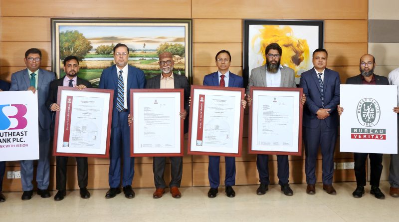 সাউথইস্ট ব্যাংকের আন্তর্জাতিক বিভাগ বাংলাদেশে প্রথম আইএসও ৯০০১:২০১৫ সনদ অর্জন করেছে