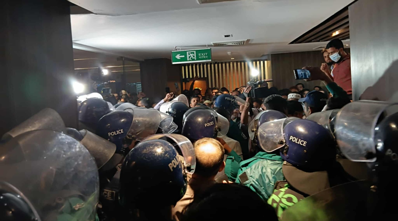 অর্থ উপদেষ্টার দপ্তরের সামনে অবস্থান নেন এবং তাঁকে অবরুদ্ধ করেন’